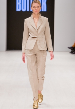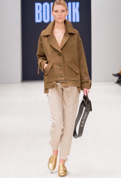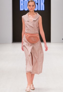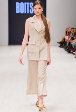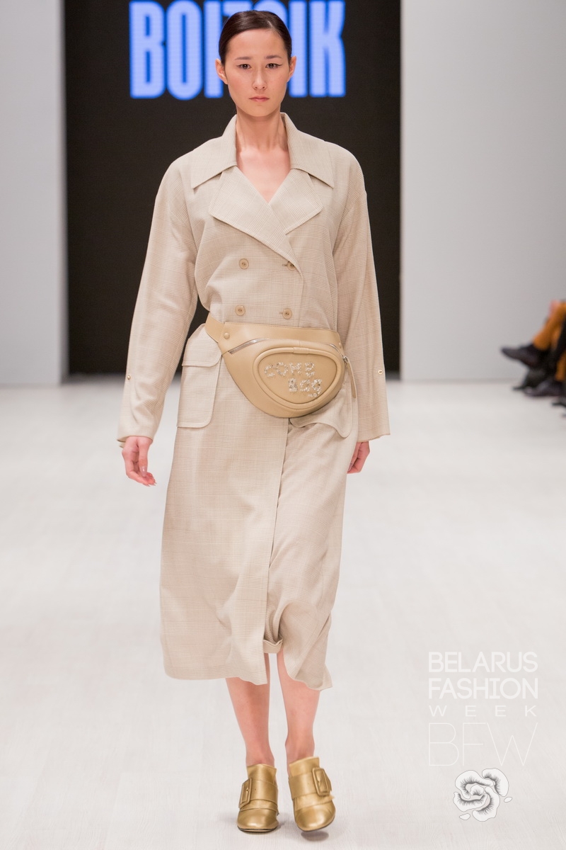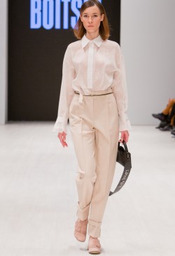 BOITSIK collection uses high-quality textured wool, viscose, silk. Main colors of the collection: milk, powdery pink, golden green. The collection was built on the game of details. Soft colors and shapes are complemented by "brutal" fittings. A look of a fragile girl with a "steel rod."