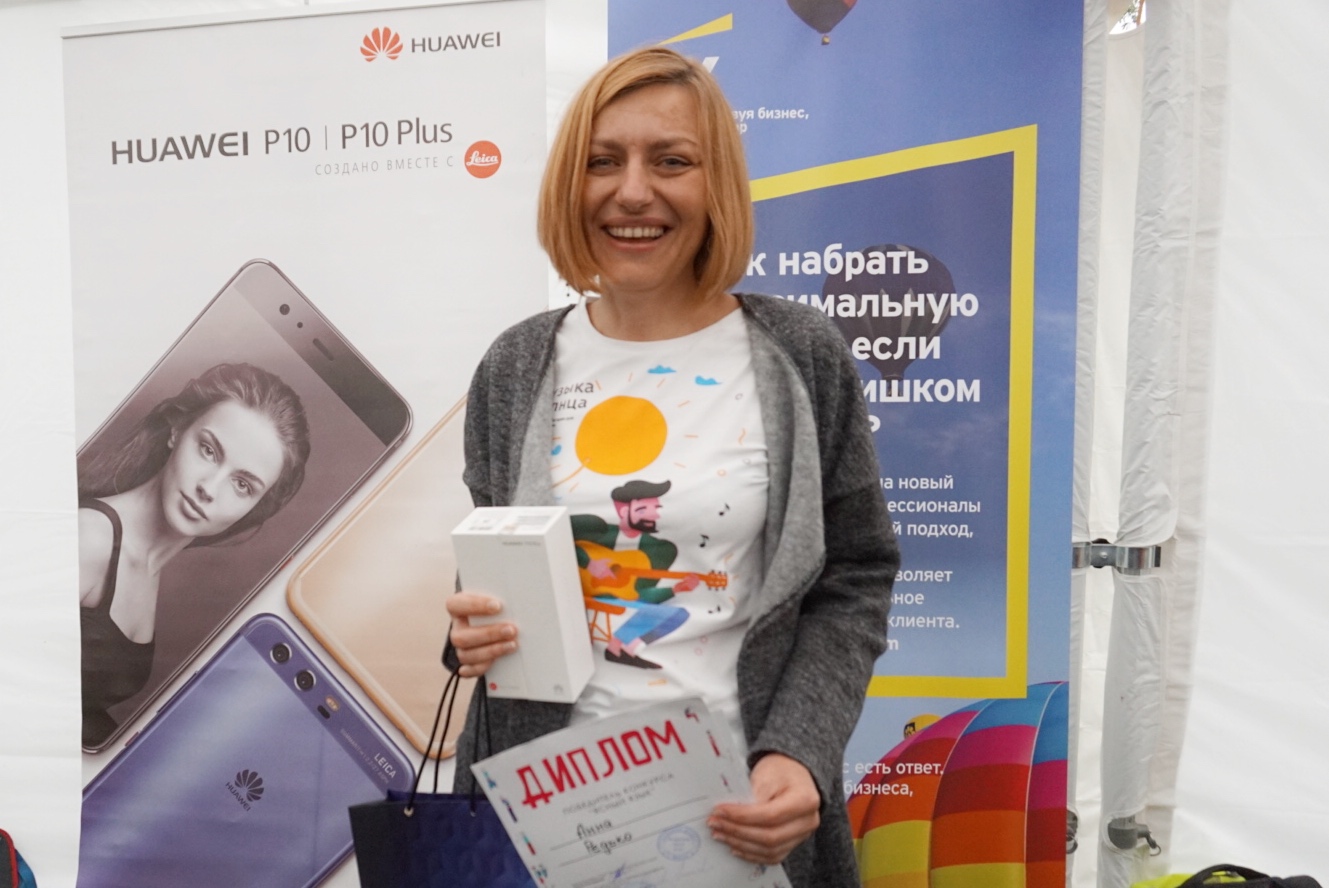 The best work, in the opinion of the jury, was a t-shirt "Music of the Sun" by designer Anna Redko. Irina Korziuk, a Huawei representative, personally congratulated the designer on a victory and awarded her with the smartphone Huawei P10 Plus.