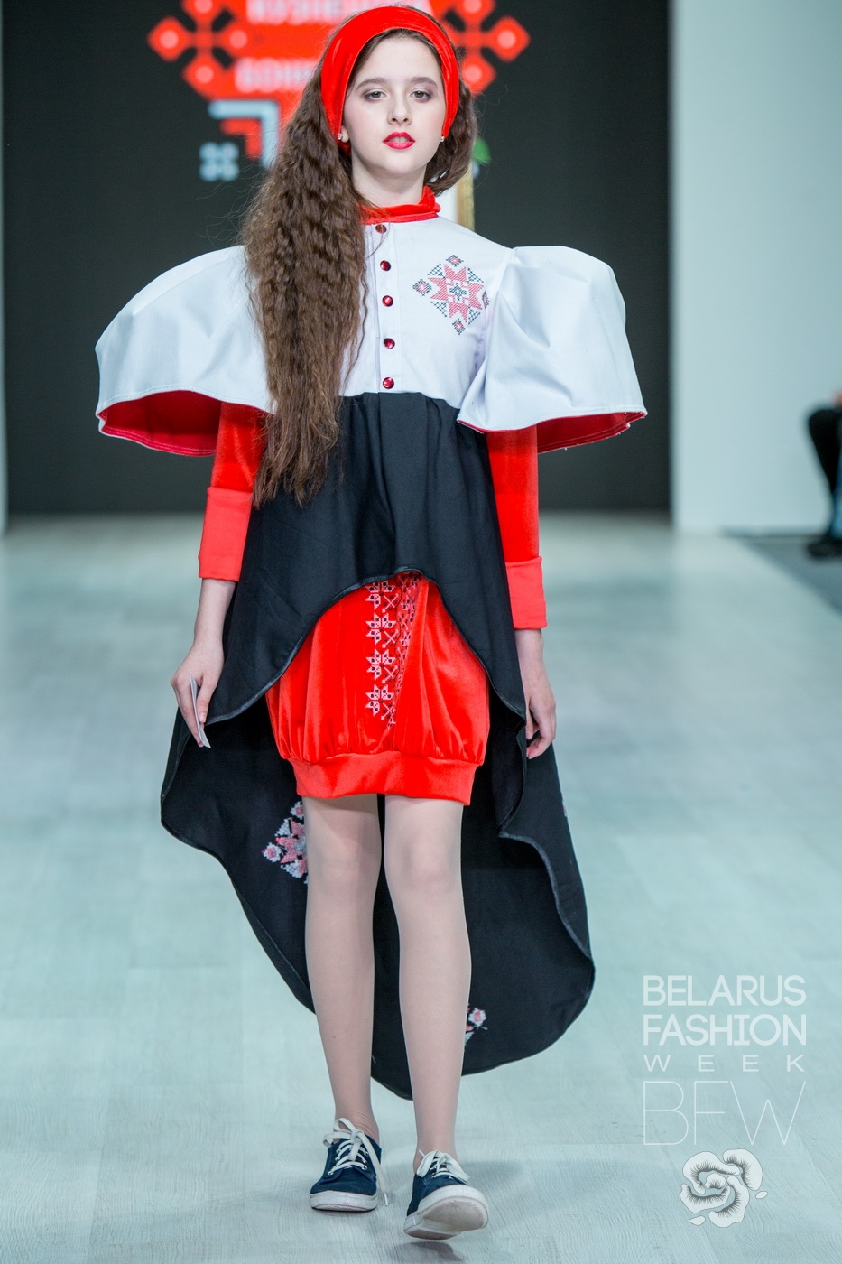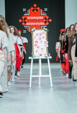 Коллекция «Белослава» состоит из молодежных образов, которые отображают проблему адаптации моды к современной культуре белорусского этнокультурного наследия.