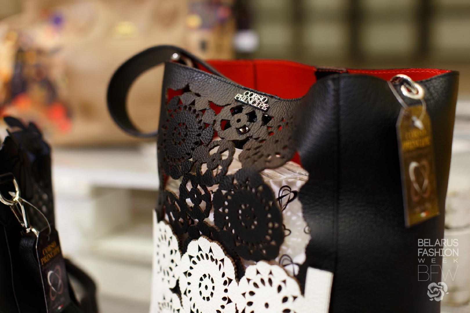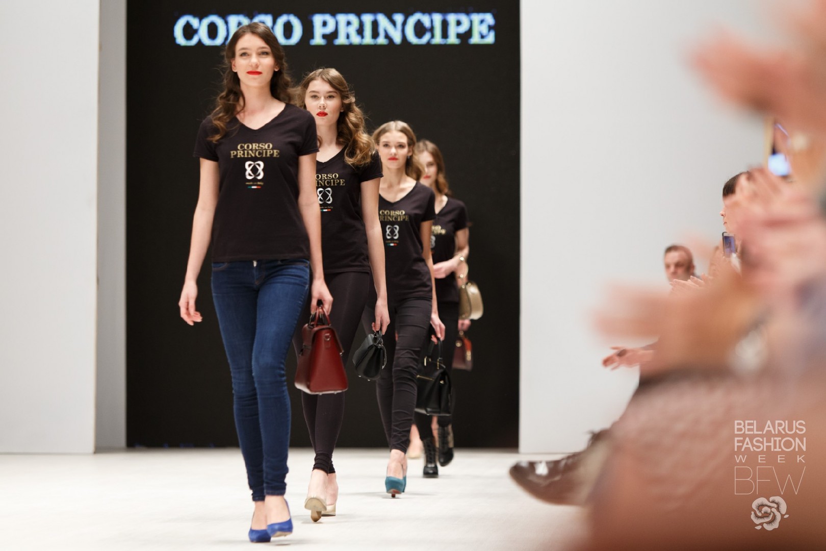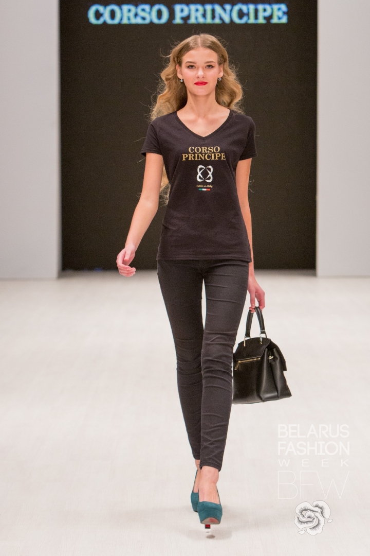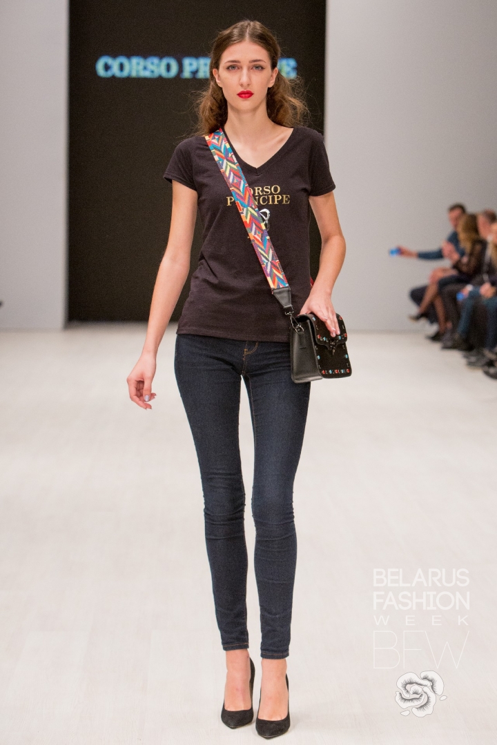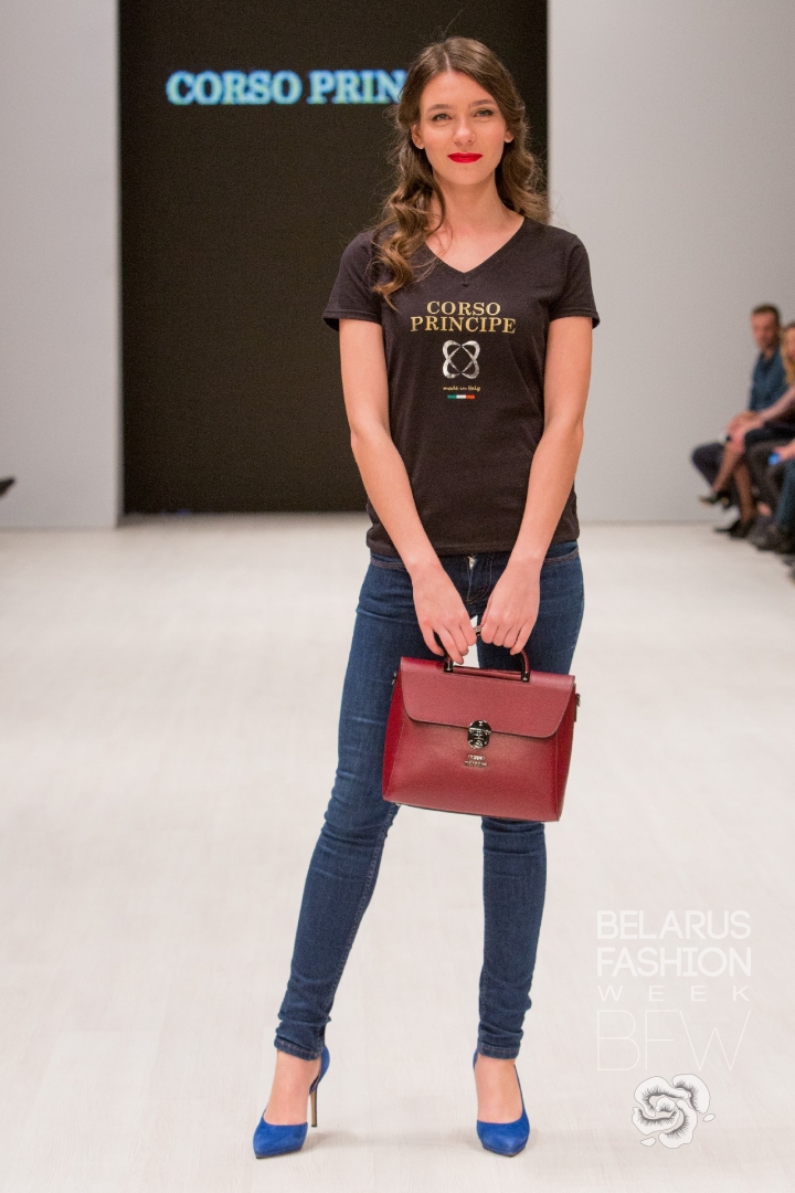 Бренд Corso Principe продемонстрировал сумки из натуральной кожи в сдержанной цветовой гамме. Простота линий и форм уравновешивается нетривиальными акцентами: фурнитурой в виде птиц; декоративными заклепками; широкими фактурными ремнями. Благодаря этому сумки становятся так называемой стилистической палочкой-выручалочкой для женщин в различных обстоятельствах. Очевидным преимуществом коллекции стала ее ценовая доступность.