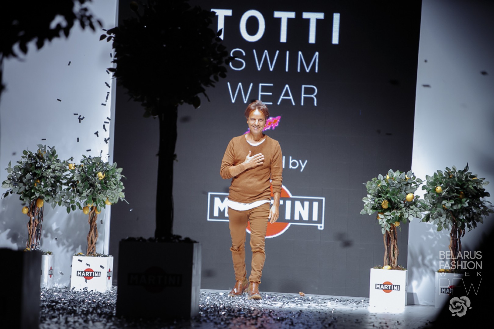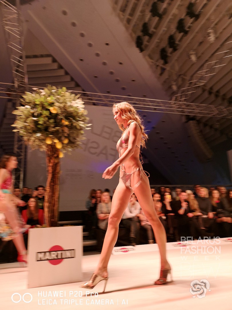 Финальным и ярчайшим показом 17-ого сезона Belarus Fashion Week стало дефиле от бренда TOTTI SWIMWEAR inspired by Martini. Дизайнер Сальваторе Тотти Патоккио в очередной раз продемонстрировал свое умение продемонстрировать множество трендов пляжной моды, при этом сохранив свой собственный взгляд на нее. Металлизированные ткани бронзового, бирюзового, розового, лимонного цветов оформлены в причудливо скроенные бикини и танкини. Кроме того, в декоре купальников итальянец использует рюши и оборки. Стоит обратить внимание на необычную стилизацию показа – головы девушек украшали ленты, шелковые платки, накладные челки из искусственного материала, а также нетривиальные головные уборы. Дизайнер рекомендует активно использовать бижутерию для шумных вечеринок у бассейна и не пренебрегать аксессуарами (сумки, солнцезащитные очки).